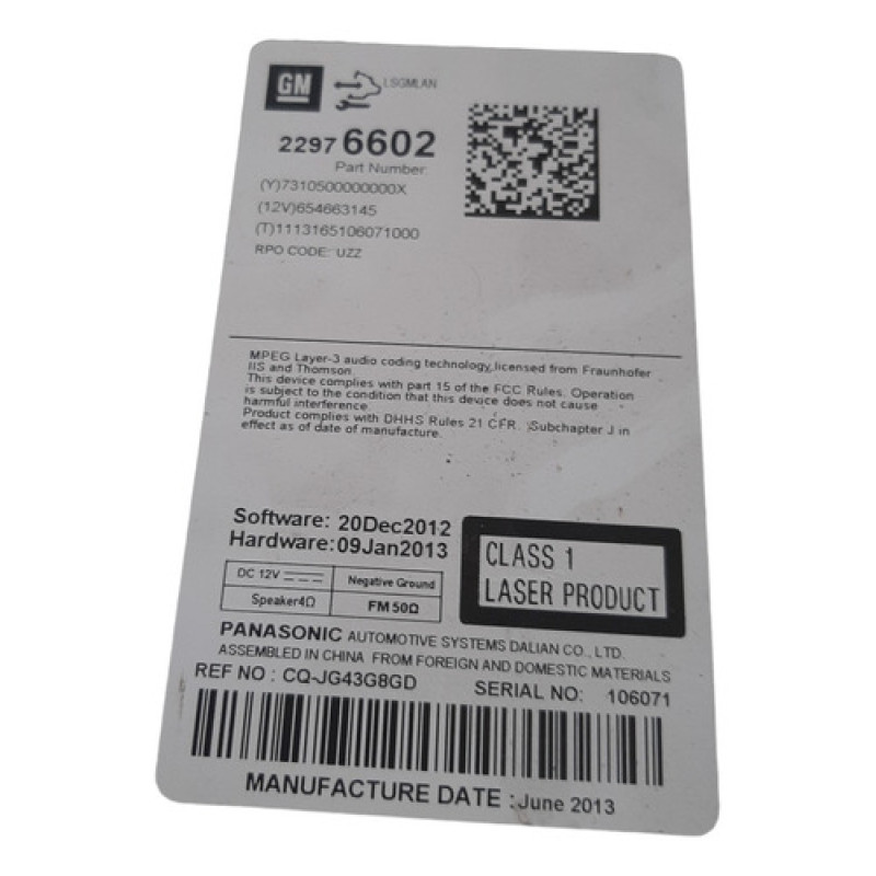 Radio cd Mp3 Chevrolet Cruze 1.8 2012 2013 2014 2015 2016